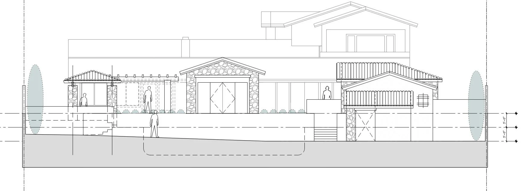 This project is located in the hills of Villa Park. It’s an older property that suffers from disconnected projects and no overall concept of how to tie the existing elements together. In this project the pool becomes the organizing element for a new guest house, outdoor kitchen, outdoor dining areas, and recreation elements. The addition of cascading tiers stratifies the elements into three distinct zones; the main living level, guest & entertaining level, and a recreation level.